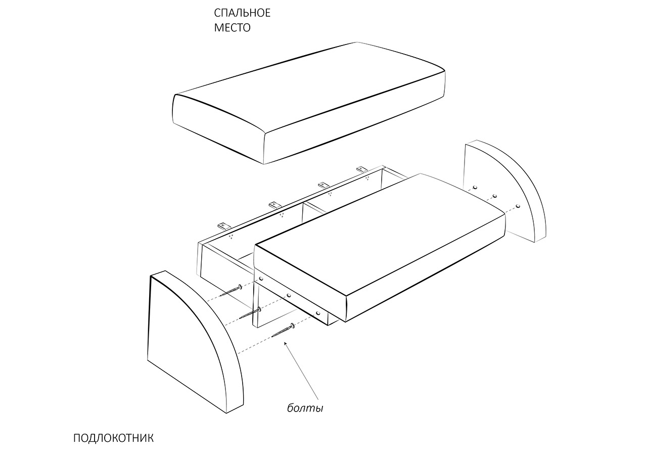 - «ножницы» (поворотный механизм) - практичный, но более дорогостоящий вариант, обеспечивает легкую трансформацию, за счет одного поворота подвижной части (на 90 градусов), давая в результате удобное спальное место;